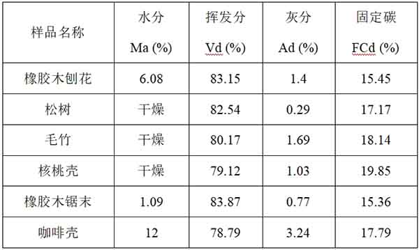 表1. 常見生物質原料的工業分析